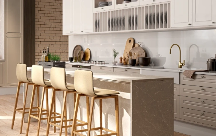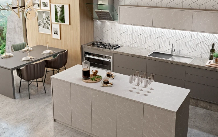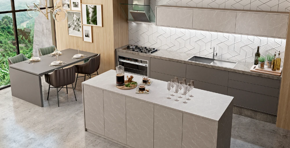 Com uma bancada livre, a cozinha com ilha oferece muitos recursos para você usar toda sua criatividade. Nessa área, você pode: