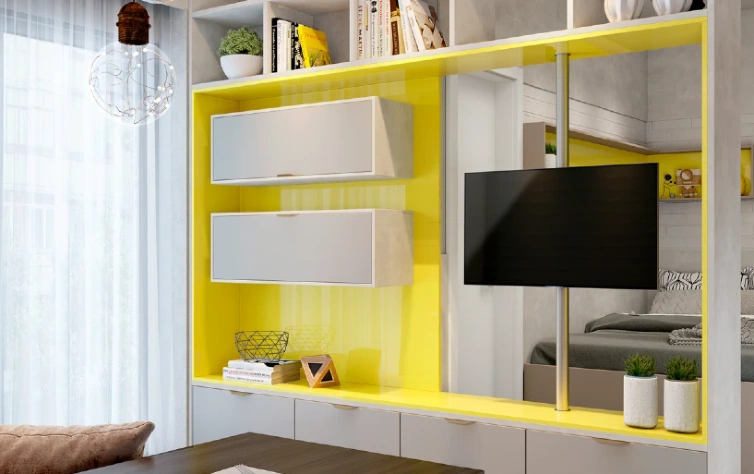 É importante a escolha de um mobiliário funcional, que ajude a manter a organização do ambiente, bem como um que tenha boa distribuição e não atrapalhe a circulação dos moradores. Armários aéreos e nichos cumprem os dois papéis! Além disso, são tendência na decoração.