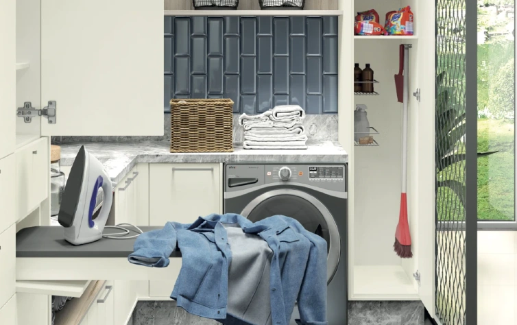 diferentes cômodos da casa, como banheiro, sala, lavanderia e quarto. Além disso, o azul
