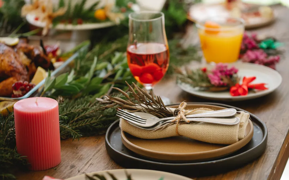 Para o Natal, você pode criar um centro de mesa com pinhas, ramos de pinheiro e velas. Já para o Réveillon, opte por um arranjo com flores brancas e velas douradas. Lembre-se de deixar espaço suficiente para os pratos e talheres, para que os convidados possam se servir confortavelmente.