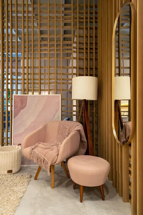 Por se tratar de uma cor suave, uma boa pedida é adicionar um móvel ou detalhe em uma tonalidade mais vibrante. Esse contraste pode ser especialmente eficaz em áreas de destaque, como uma mesa de centro na sala de estar ou um balcão de cozinha.