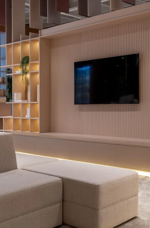 Cada projeto é cuidadosamente elaborado considerando os hábitos, gostos e estilo de vida de cada família, resultando em um living que reflete a identidade e personalidade dos moradores.