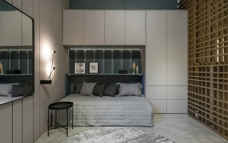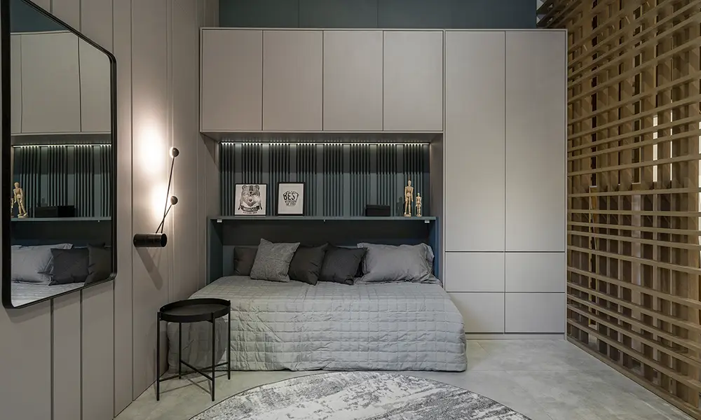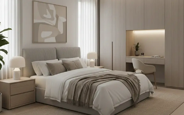 No dormitório de casal planejado e pequeno, o foco está na otimização do espaço. Cores claras, acabamentos uniformes e volumes bem proporcionados ajudam a criar sensação de amplitude. O uso de móveis multifuncionais e layouts inteligentes permite melhorar a circulação e aproveitar melhor cada centímetro do ambiente, sem comprometer conforto ou capacidade de armazenamento.